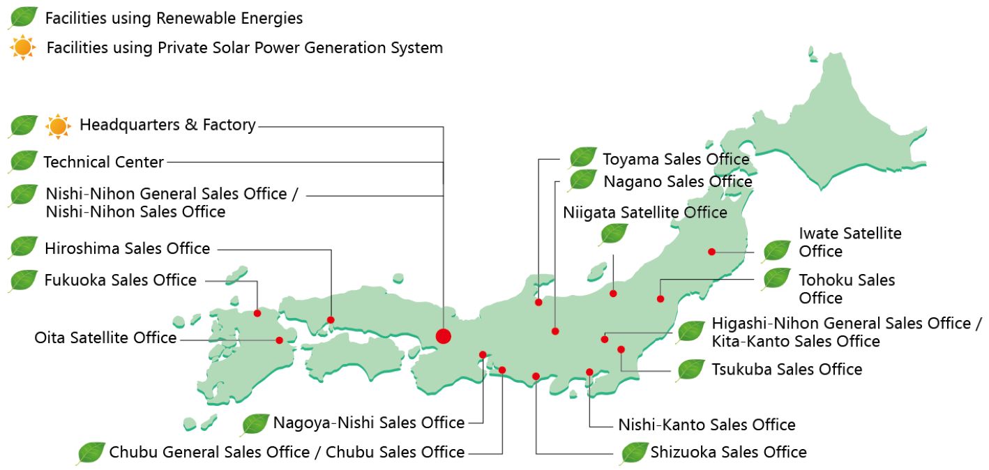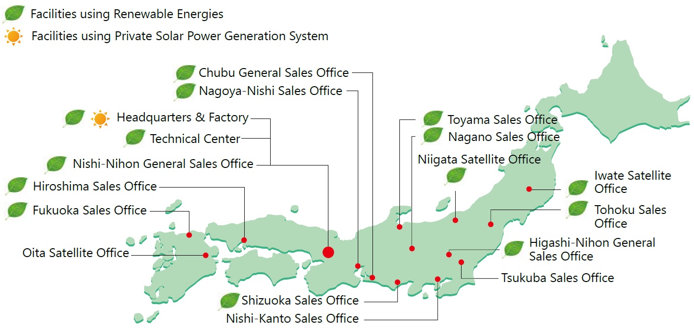 Since April 2022, we have been working to introduce green electricity in Japan through the purchase of electricity derived from renewable energy and self-consumption of solar power.